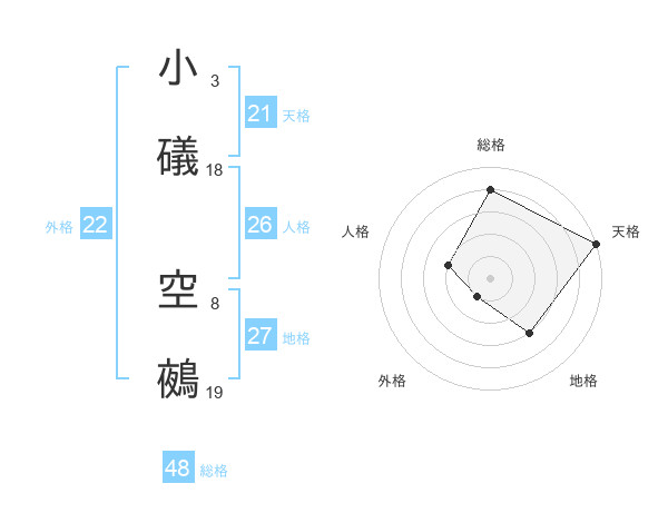 小礒 空鵺さんの総格は48画の4点!