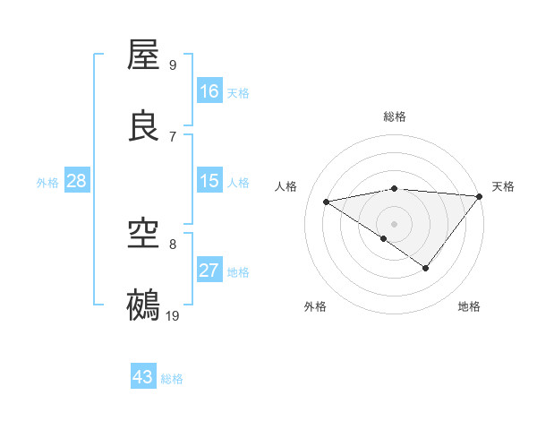 屋良 空鵺さんの総格は43画の2点!
