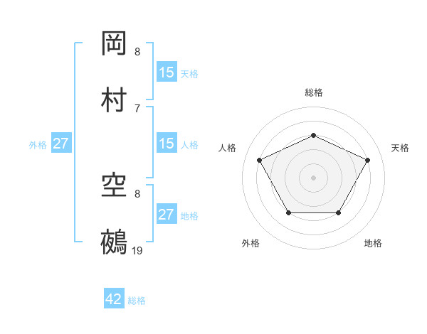 岡村 空鵺さんの総格は42画の3点!