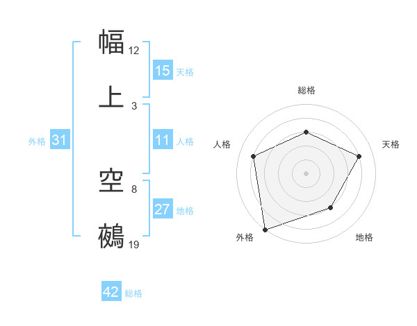 幅上 空鵺さんの天格は15画の4点!