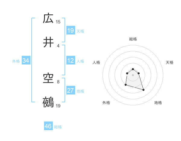 広井 空鵺さんを姓名の画数から五運を鑑定