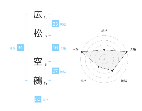 広松 空鵺さんを姓名の画数から五運を鑑定