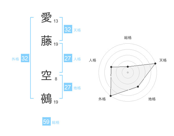 愛藤 空鵺さんを姓名の画数から五運を鑑定
