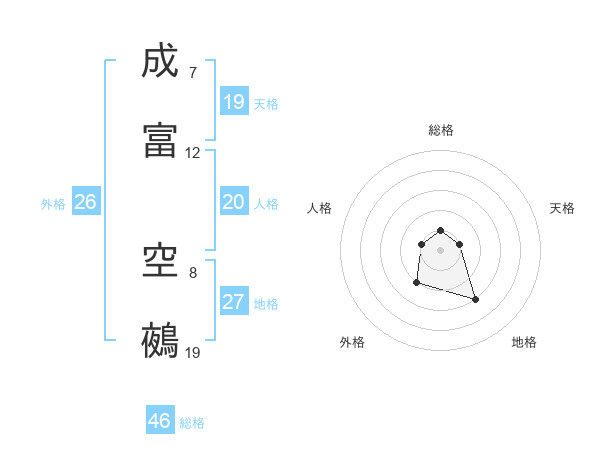 成富 空鵺さんを姓名の画数から五運を鑑定