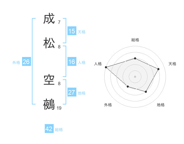 成松 空鵺さんの総格は42画の3点!