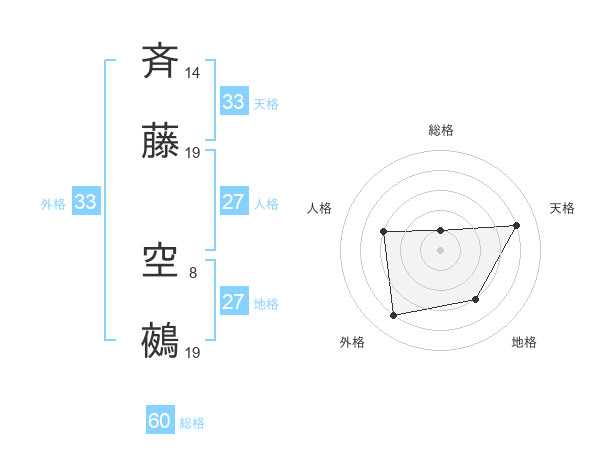 斉藤 空鵺さんの外格は33画の4点!