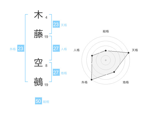 木藤 空鵺さんを姓名の画数から五運を鑑定