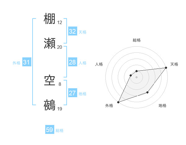 棚瀬 空鵺さんの総格は59画の1点!