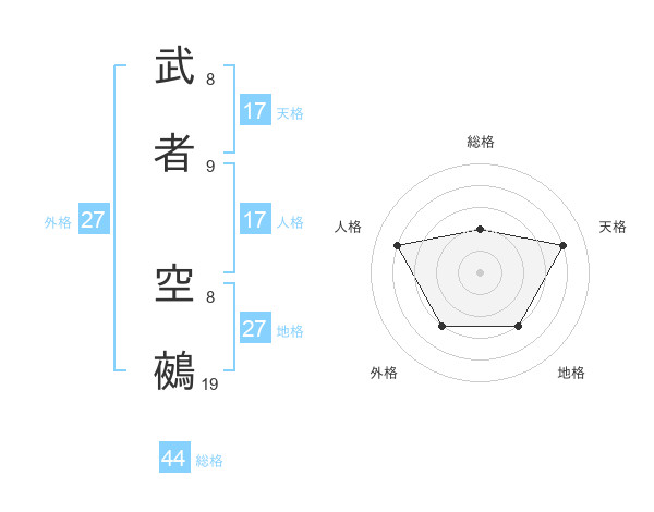 武者 空鵺さんの総格は44画の2点!