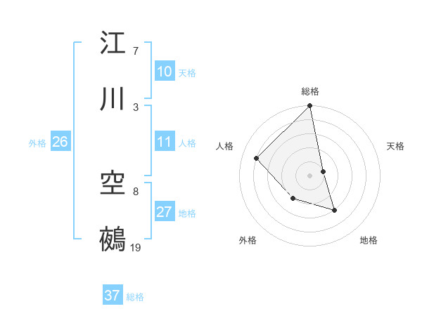 江川 空鵺さんを姓名の画数から五運を鑑定