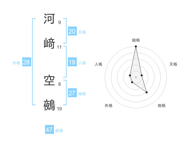 河﨑 空鵺さんの総格は47画の5点!