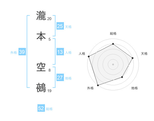 瀧本 空鵺さんを姓名の画数から五運を鑑定