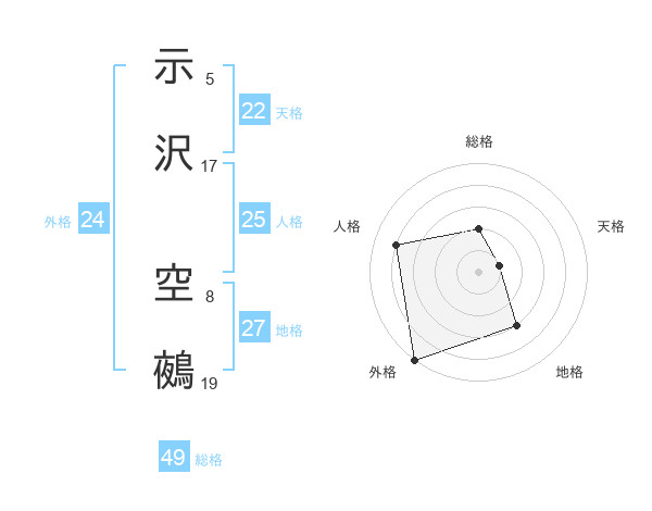 示沢 空鵺さんを姓名の画数から五運を鑑定