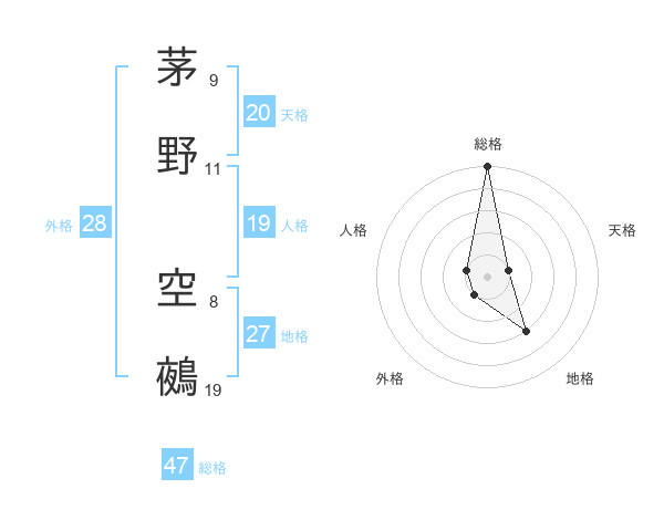 茅野 空鵺さんの総格は47画の5点!