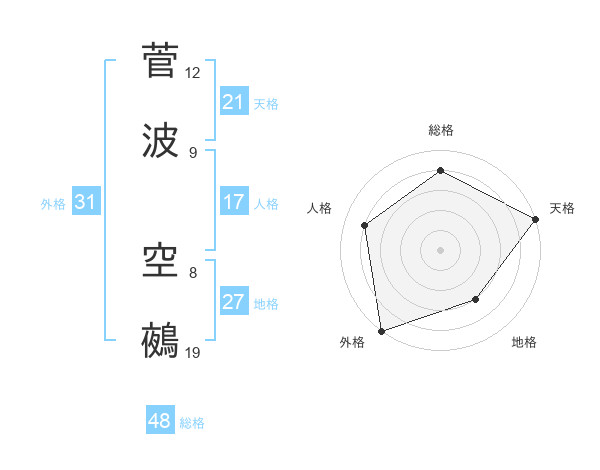 菅波 空鵺さんの総格は48画の4点!