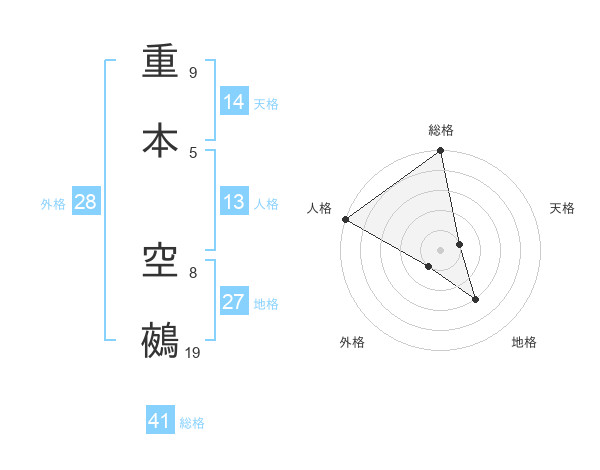 重本 空鵺さんの総格は41画の5点!