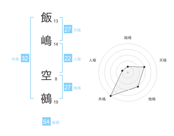 飯嶋 空鵺さんの総格は54画の1点!