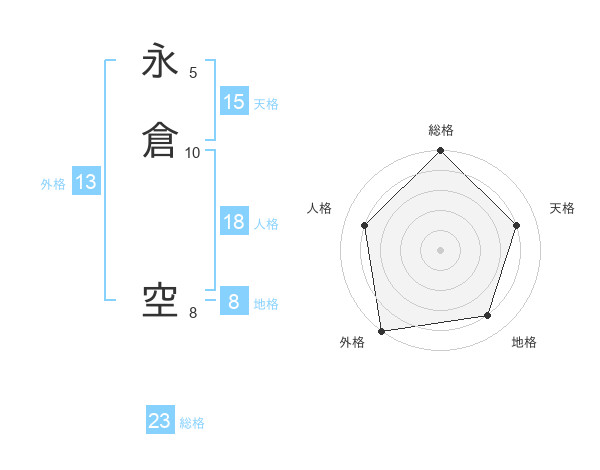 永倉 空さんの総格は23画の5点!
