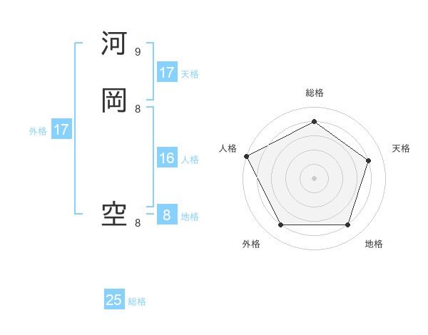 河岡 空さんの総格は25画の4点!