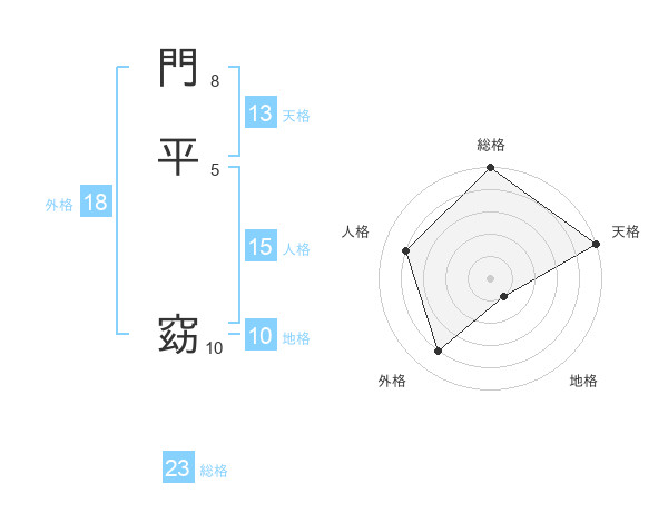 家系が持つ宿命的な運勢を表します。祖先から受け継いだ苗字ですので自分の力が及びません。家柄を象徴します。