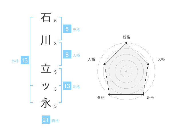 石川 立ッ永さんの地格は13画の5点!