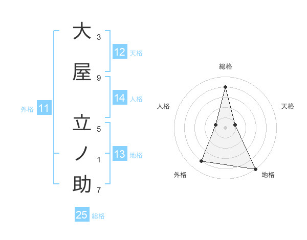 大屋 立ノ助さんの総格は25画の4点!