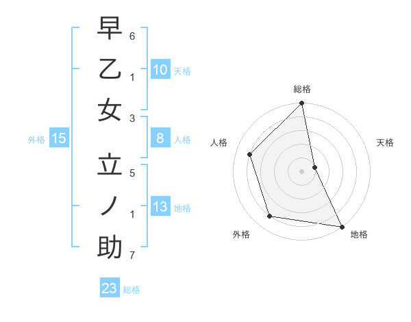 早乙女 立ノ助さんを姓名の画数から五運を鑑定