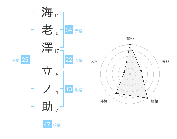 海老澤 立ノ助さんの総格は47画の5点!