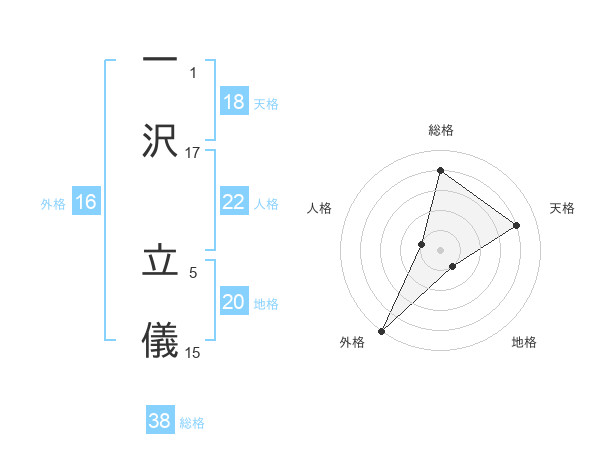 一沢 立儀さんの総格は38画の4点!