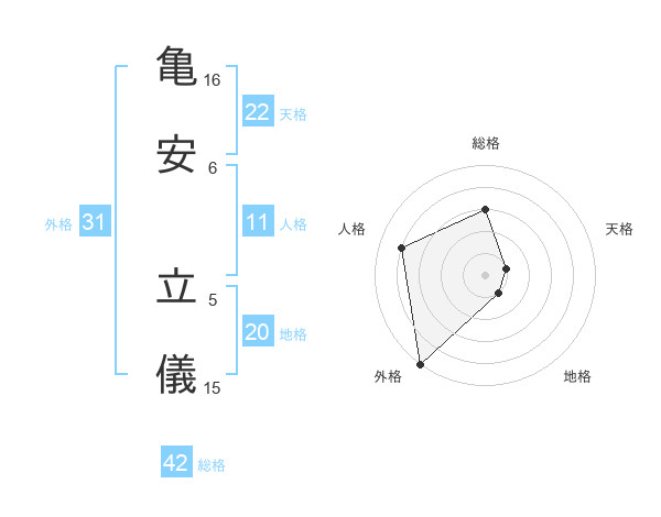 亀安 立儀さんの総格は42画の3点!