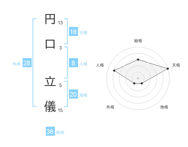 円口 立儀さんの天格は16画の5点!