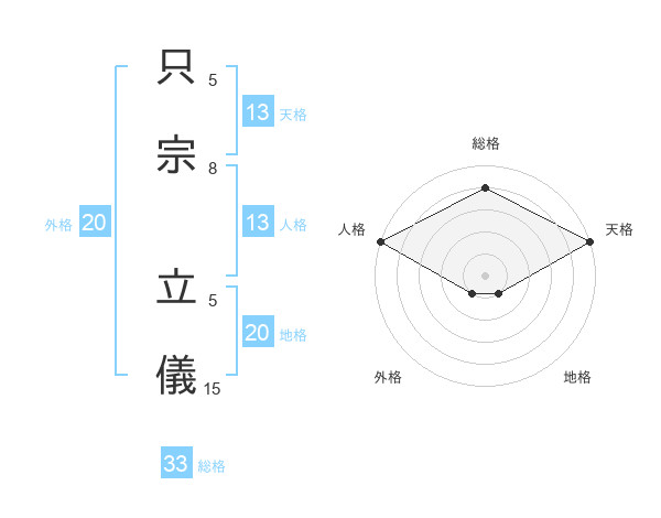 只宗 立儀さんを姓名の画数から五運を鑑定