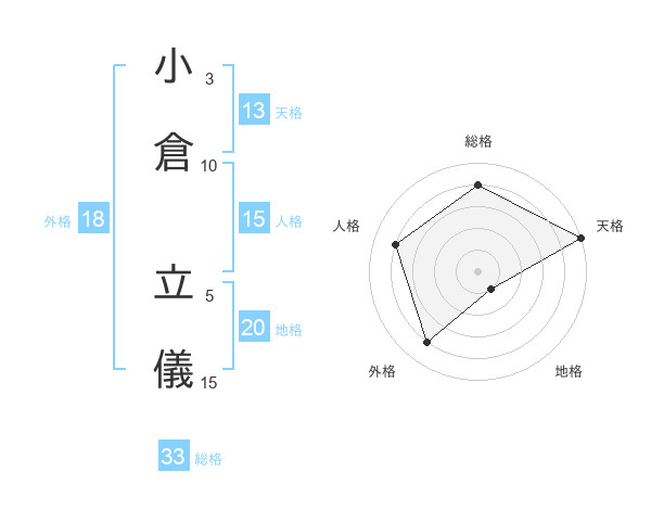 小倉 立儀さんの総格は33画の4点!