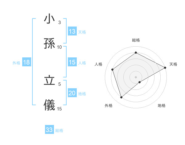 小孫 立儀さんを姓名の画数から五運を鑑定
