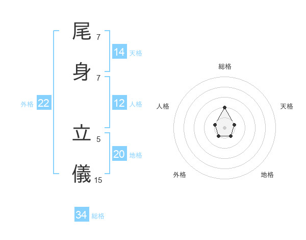尾身 立儀さんの総格は34画の2点!