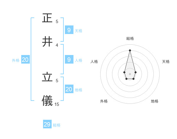 正井 立儀さんの総格は29画の4点!