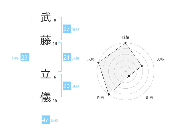 武藤 立儀さんの総格は47画の5点!