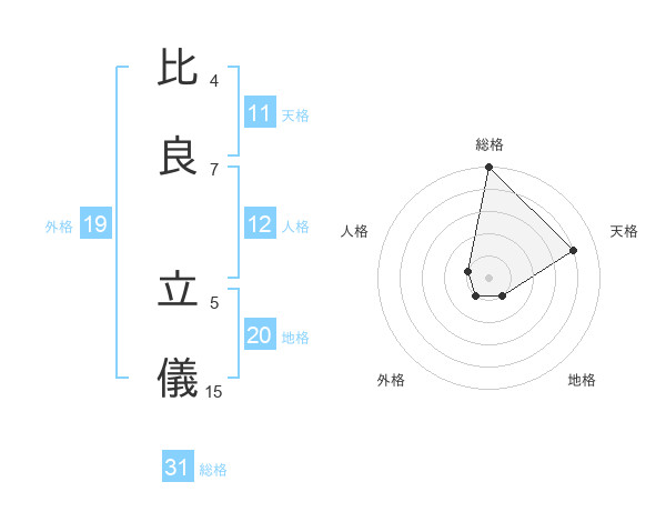 比良 立儀さんの地格は20画の1点!