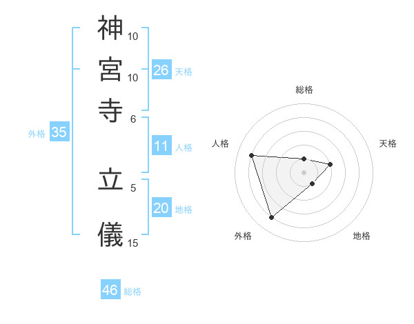 神宮寺 立儀さんを姓名の画数から五運を鑑定