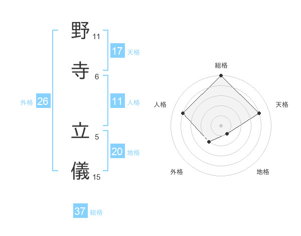 野寺 立儀さんの総格は37画の5点!