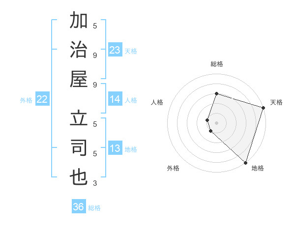 加治屋 立司也さんを姓名の画数から五運を鑑定