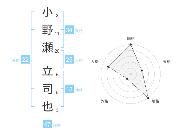小野瀬 立司也さんの総格は47画の5点!