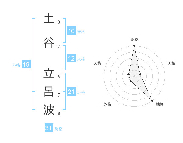 土谷 立呂波さんの総格は31画の5点!