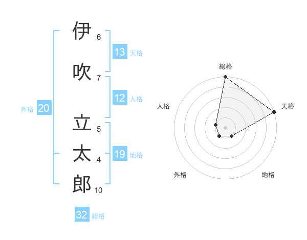 伊吹 立太郎さんの総格は32画の5点!