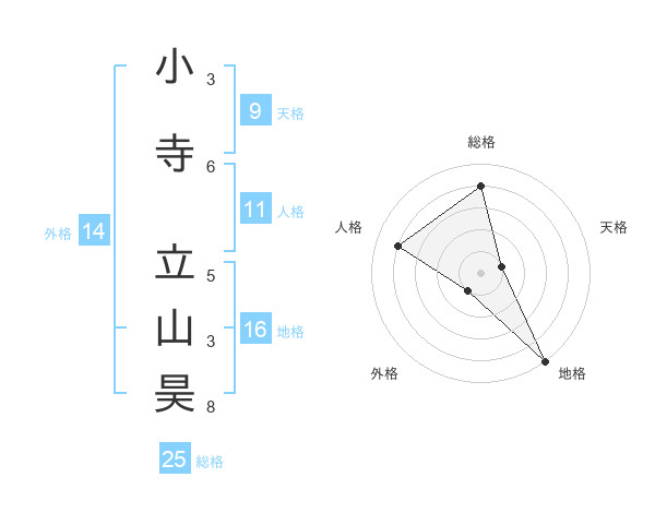 小寺 立山昊さんを姓名の画数から五運を鑑定