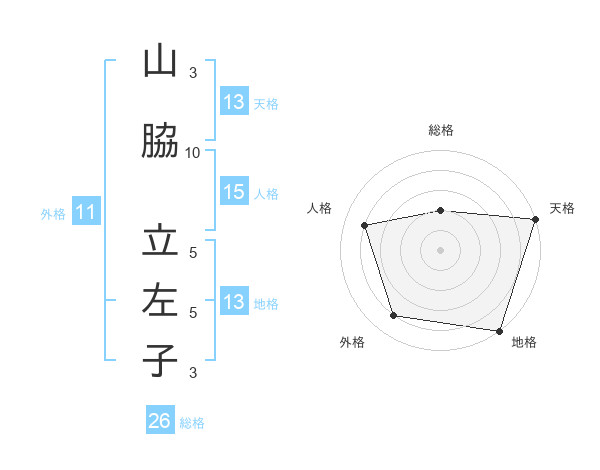 山脇 立左子さんを姓名の画数から五運を鑑定