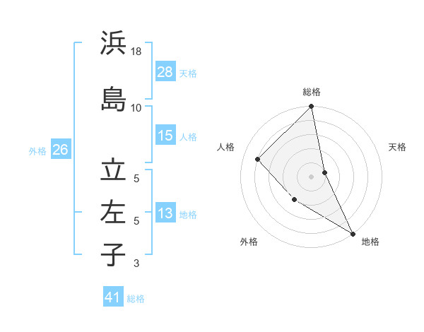 浜島 立左子さんを姓名の画数から五運を鑑定
