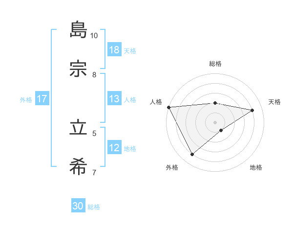 島宗 立希さんの総格は30画の2点!