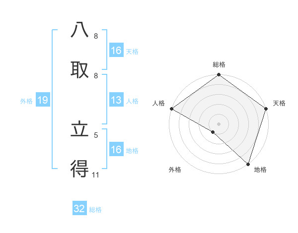八取 立得さんの地格は16画の5点!