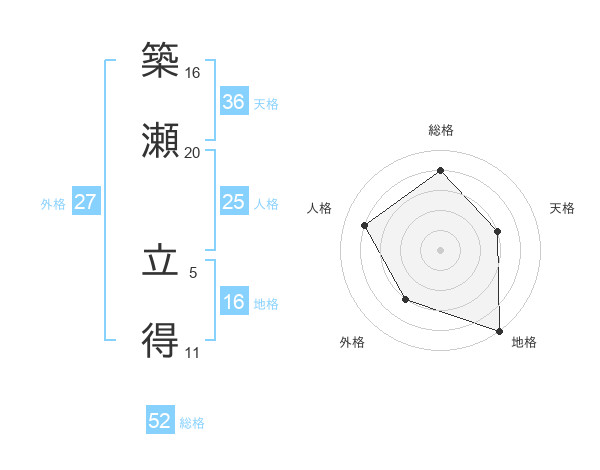 築瀬 立得さんを姓名の画数から五運を鑑定